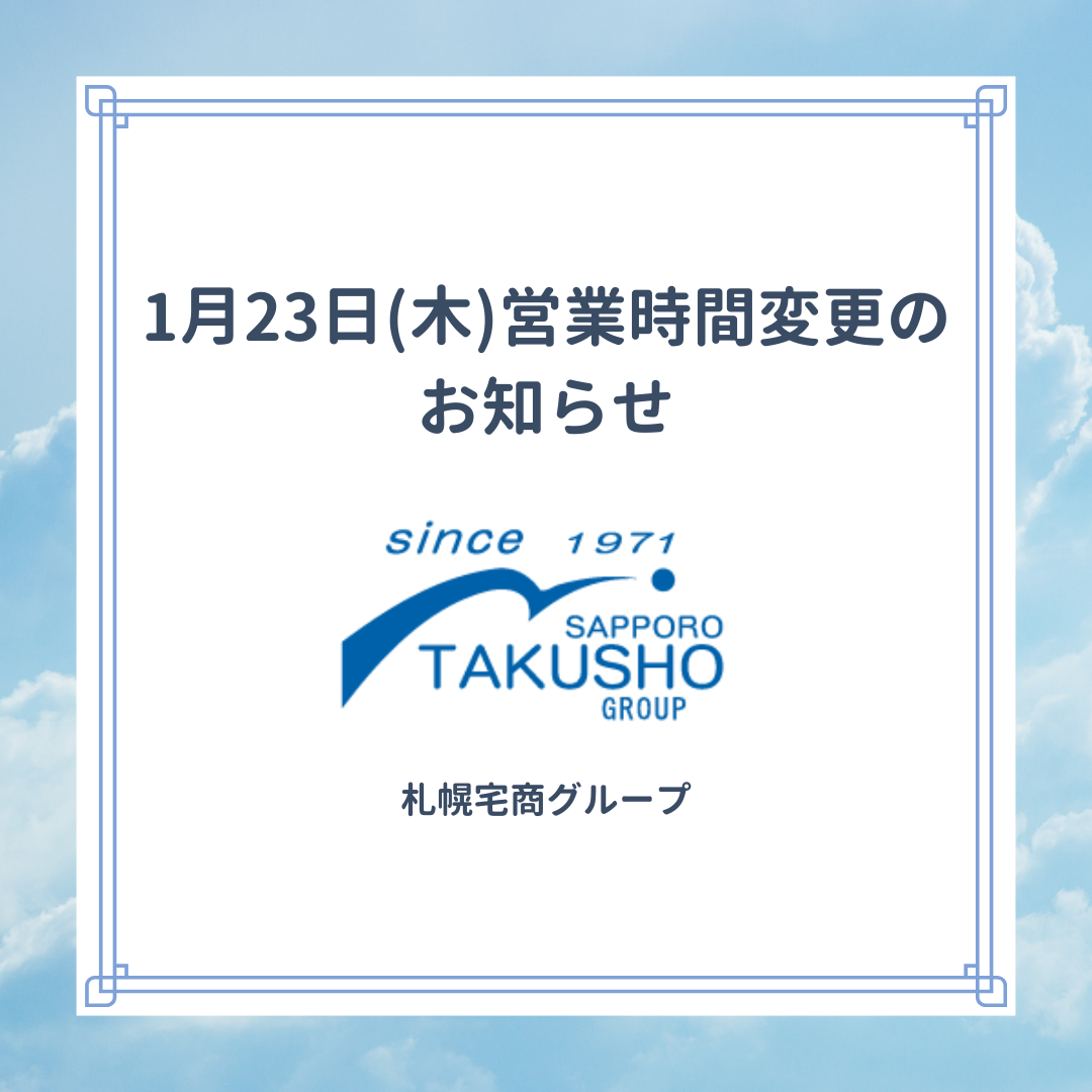 【札幌宅商グループ】1/23(木)営業時間一時変更のお知らせ